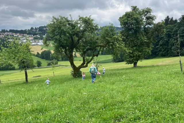 Gruppen, die Landwirtschaft intensiv erleben möchten – kombiniert mit Naturerfahrung im Bayerischen Wald, viel Freiraum und einem echten Einblick in einen aktiven Milchviehbetrieb. Bäuerin Kerstin freut sich über den Besuch von Kindergartengruppen, Schulklassen, Hortgruppen, Familiengruppen z.B. zu einem Kita-Abschlussausflug aber auch Geburtstagskinder ab 4 Jahren. An- und Abreise nur mit eigenen Fahrzeugen oder gemietetem Bus möglich.