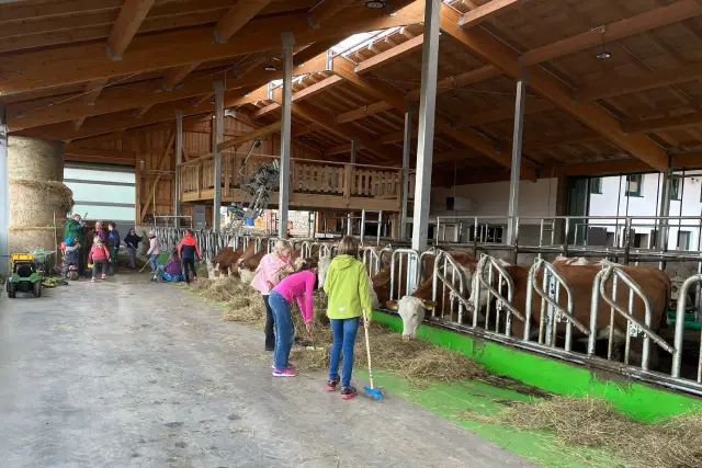Auf diesem Hof dürfen Kinder nicht nur zuschauen – sie werden selbst aktiv. Kinder helfen im Stall, füttern die Kühe, Kälber und Hühner, schütteln gemeinsam Butter und erleben ganz praktisch, wie aus Sahne ein Lebensmittel entsteht. Schulklassen können im Rahmen der Lernprogramme ebenfalls Butter herstellen oder gemeinsam Pfannkuchen und Waffeln backen. So wird Landwirtschaft begreifbar – im wahrsten Sinne des Wortes.